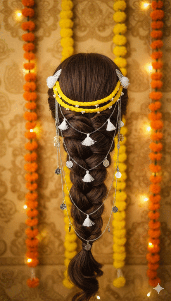 Rose Charm Braided Hair Chain with Silver Tassels πΈβ¨