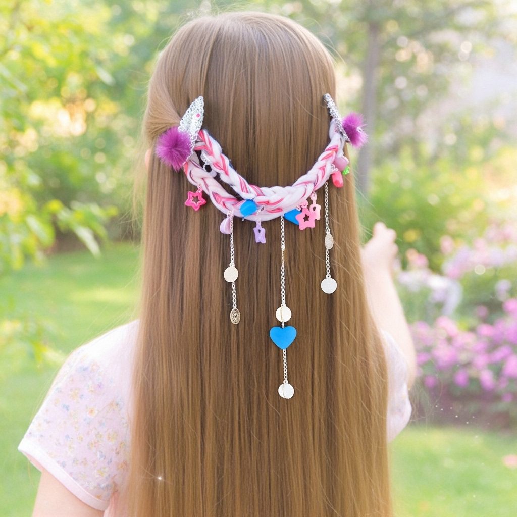 Unleash your inner child with the Dreamland Pastel Braided Hair Chain, an accessory that brings fairy tales to life. This charming piece features a beautifully intertwined pale pink and white braid, evoking clouds and candy floss. Dangling from this soft base are an assortment of delightful star and heart-shaped charms in a rainbow of pastel colors, catching the eye with every turn.